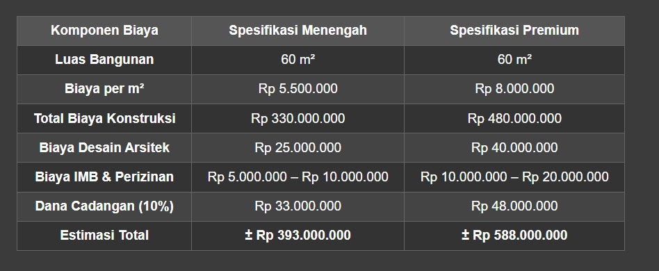 Contoh Simulasi Biaya untuk Rumah Type 60 (6m x 10m)